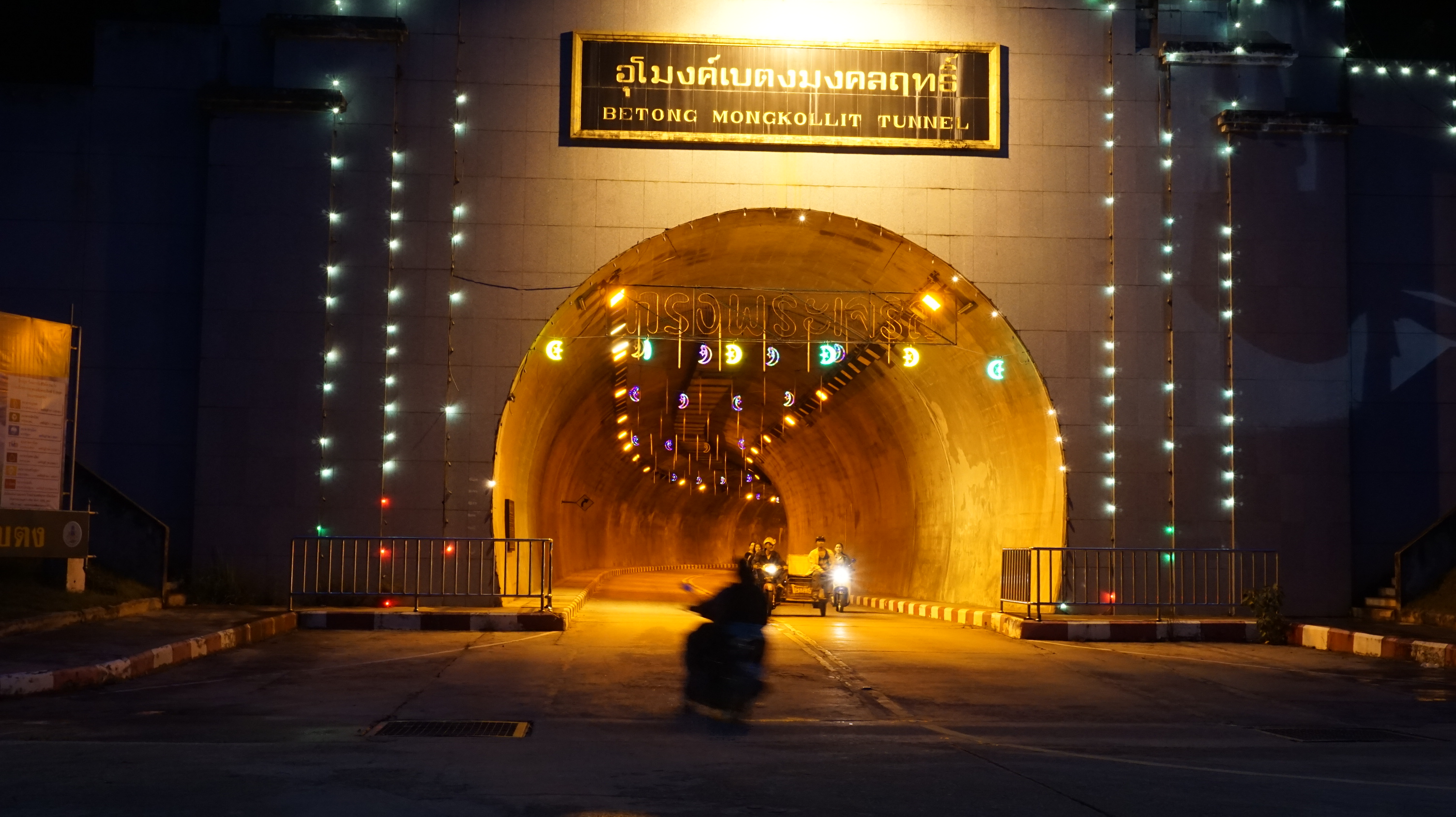 ชาวเบตงขับรถมอร์เตอร์ไซด์ผ่านอุโมงค์เบตงมงคลฤิทธิ์